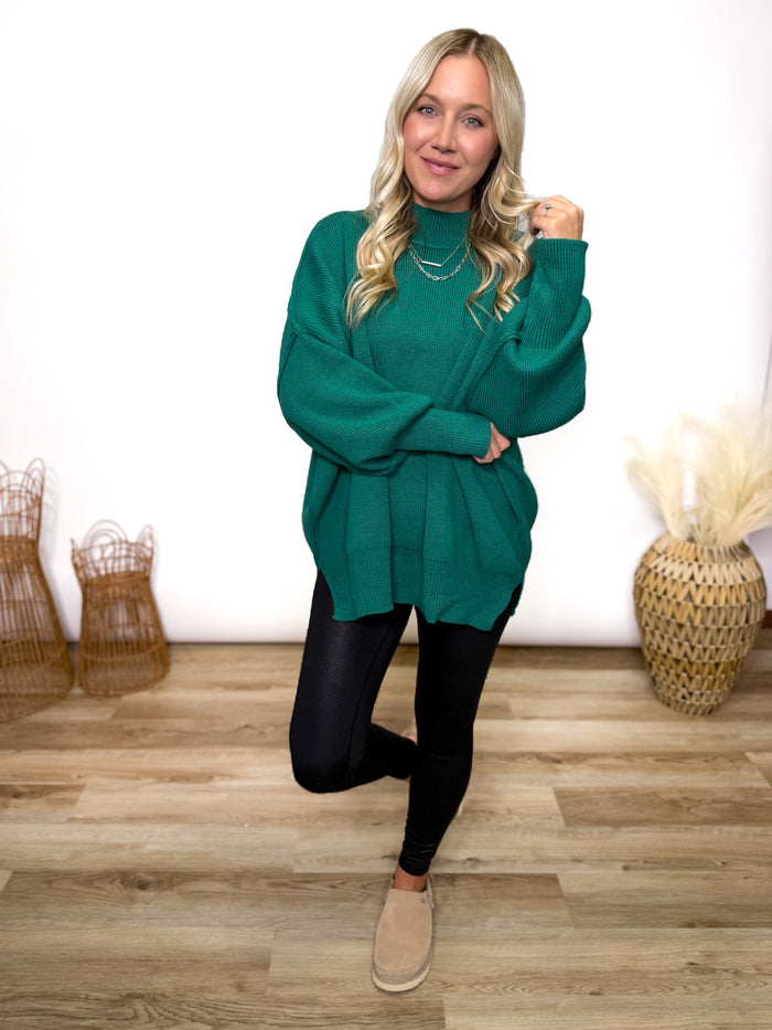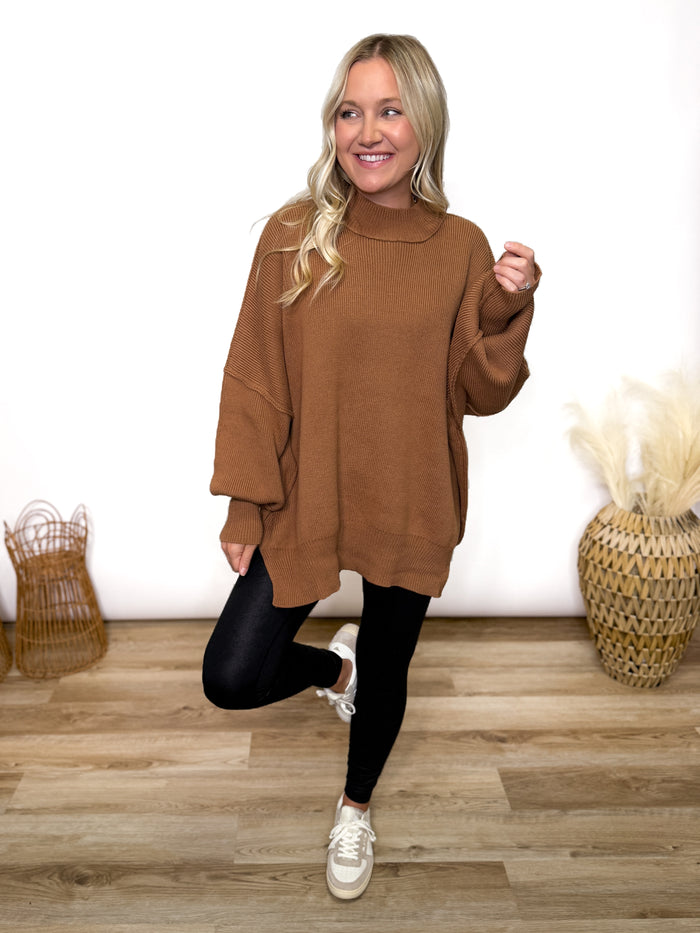 Grey Mixed Fabric Notched Neck Long Sleeve Oversized Knit Top. By POL