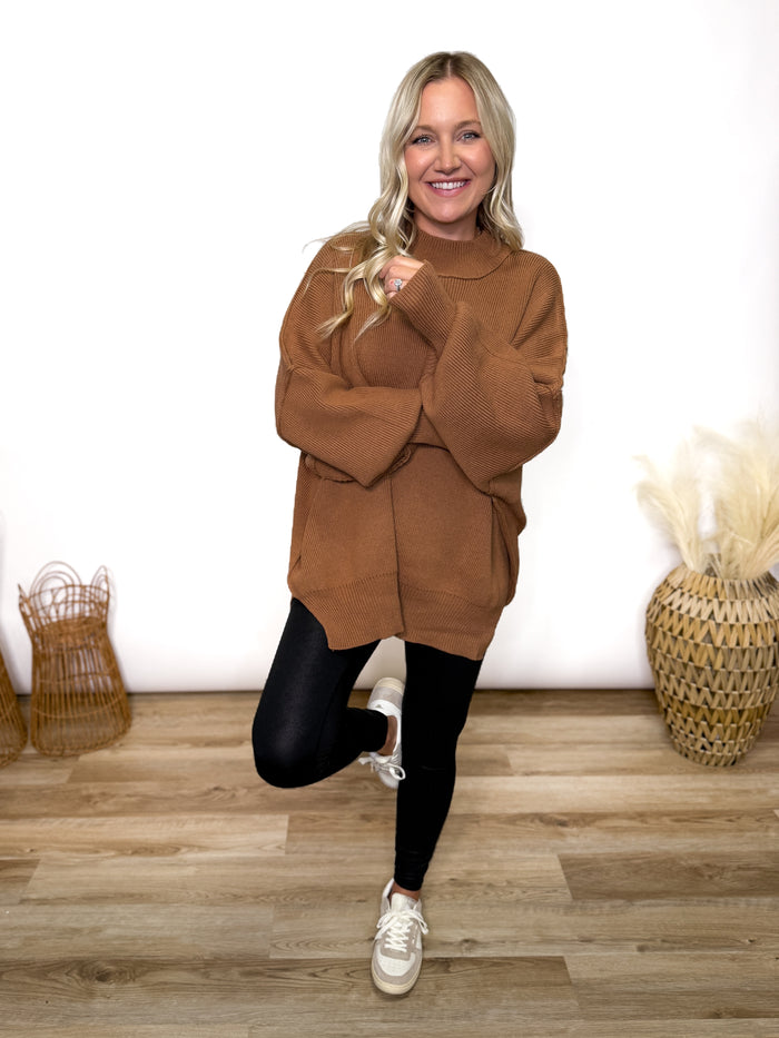 Brown fleece lined oversized hoodie cardigan with drawstring hood and pockets for women