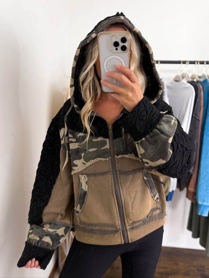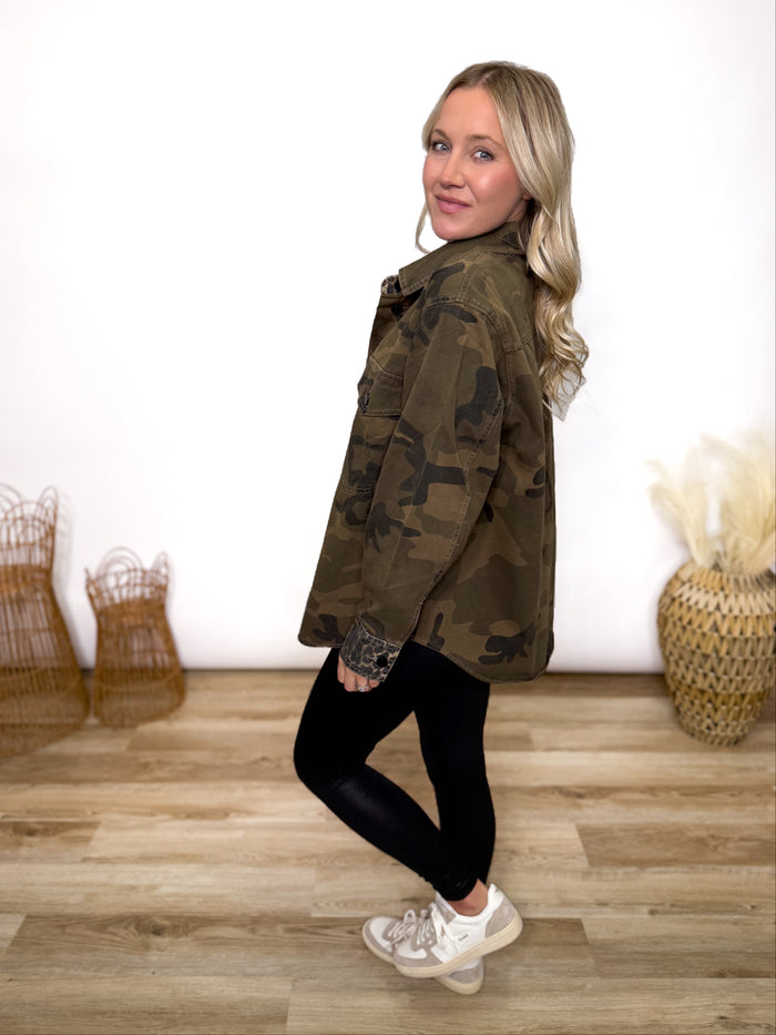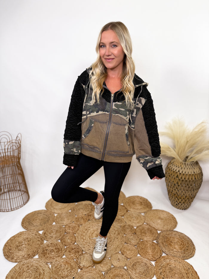 Tan & Red Floral Print Sherpa Zip Up Jacket