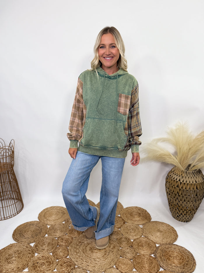 Olive green fleece-lined luxury lounge Bmaes hoodie with embroidered Bmaes Boutique logo, drop shoulders, kangaroo pocket, and ribbed details. Perfect for cozy lounging or pairing with the matching joggers for a stylish, warm set from Bmaes Boutique.