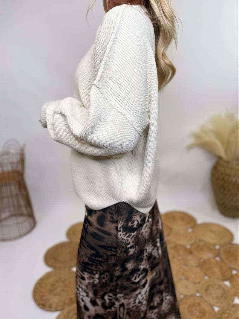 Creamy White Oversized Long Sleeve Sweater